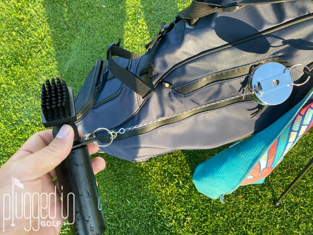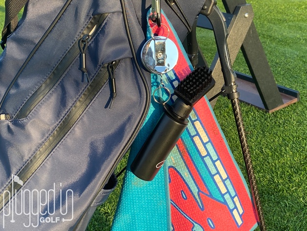 Finally, because I can hear the comments already, it’s worth explaining why Caddy Splash is better than a wet towel. Most practically, a wet towel dries out, especially in the summer. Also, for getting into the grooves, you need a brush anyway. More importantly, a wet, dirty towel is gross. It’s going to end up soaking your bag and probably you (if you walk). Alternately, you’re going to spend a bunch of energy managing which end is wet and how to hold the bag to keep yourself dry. Caddy Splash is simply a better solution.