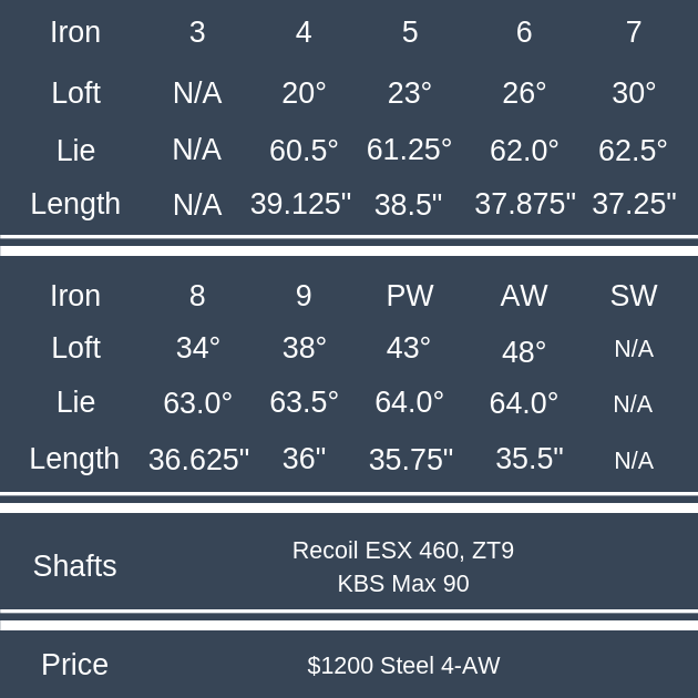 The set only goes down to AW – no SW. And yes, I did test the AW and found it very in line with performance. I typically like pitching and gap wedges to match the irons as they most often get hit with full swings where forgiveness is still important. Right now I complete my set with 54 and 58 degree wedges – check out my WITB in the About section.