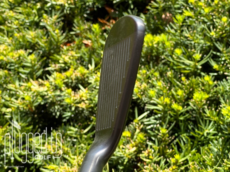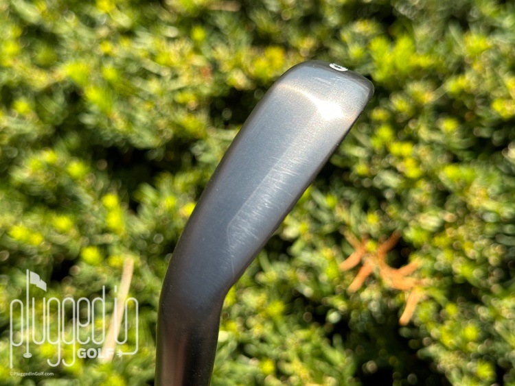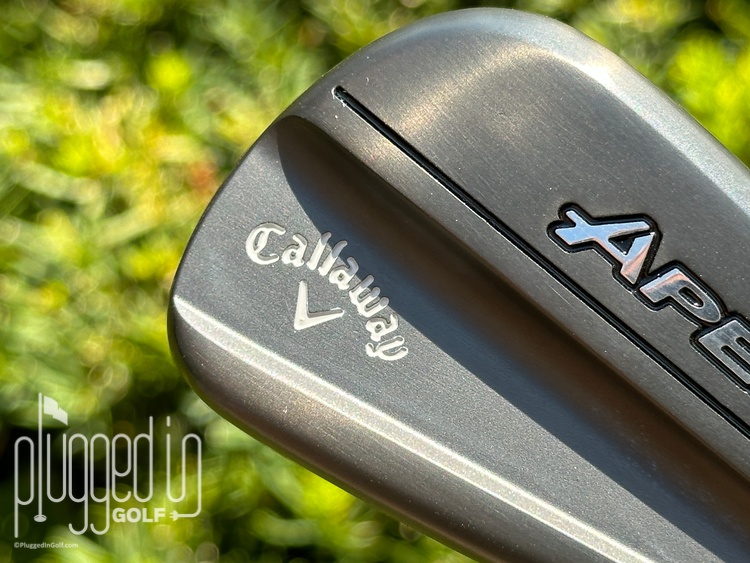 The most obvious difference between the Callaway Apex Ti Fusion irons and the other new Apex irons is the black finish. Per Callaway, these irons “are not plated and instead feature a proprietary dark finish that will naturally wear with usage like PVD finishes do.” I don’t have any long term data that can speak to durability, but I can say that the finish looks very sharp when it’s new. In the bag, the contrast of the white paintfill and chrome elements really pops. Callaway kept the branding moderate, which leaves more focus on the finish.