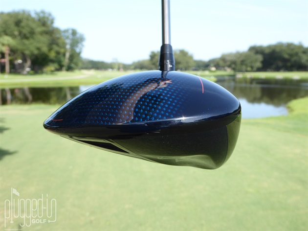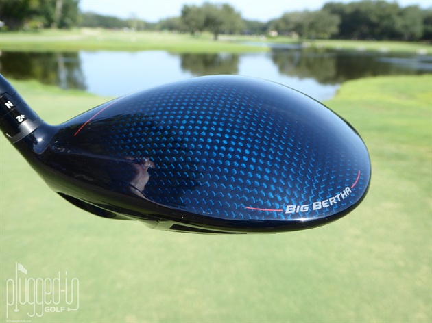 Exposed carbon fiber weave isn’t anything new, but Callaway hit it out of the park with the blue of the Big Bertha B21. The triangular shaped head is reminiscent of the Big Bertha Fusion, but with better balance and overall visual appeal. The chevron aim point and red pinstriping really pop and complete a powerful look at address. Most notable is the lack of offset, a feature I expected to find in a draw biased driver.