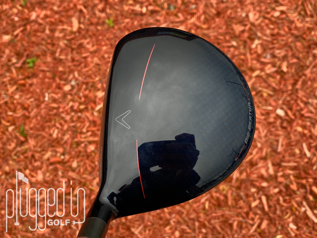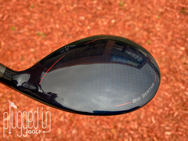 In addition to the shape, the B21 fairway wood has a dark blue crown with Callaway’s signature fade to carbon fiber. There’s also a thin red stripe on either side of the chevron alignment aid. Finally, Big Bertha branding appears on the back edge of the crown.