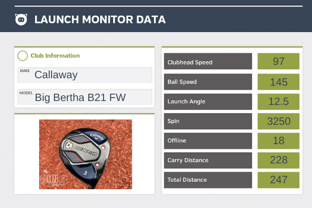 The Callaway Big Bertha B21 fairway wood is the easiest-to-launch fairway wood that I’ve ever hit. Excellent ball speed. Not as draw biased as expected. Unusual look at address.