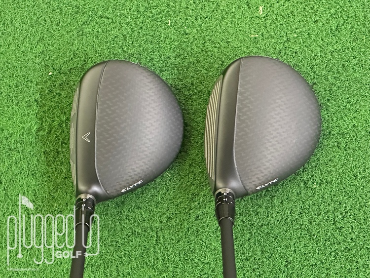 Above, you can see the Elyte Titanium fairway wood (right) next to the Callaway Elyte fairway wood [review HERE]. The Elyte Titanium is shorter from front to back, but the difference is quite small. While there are meaningful differences, they share more than a passing resemblance.