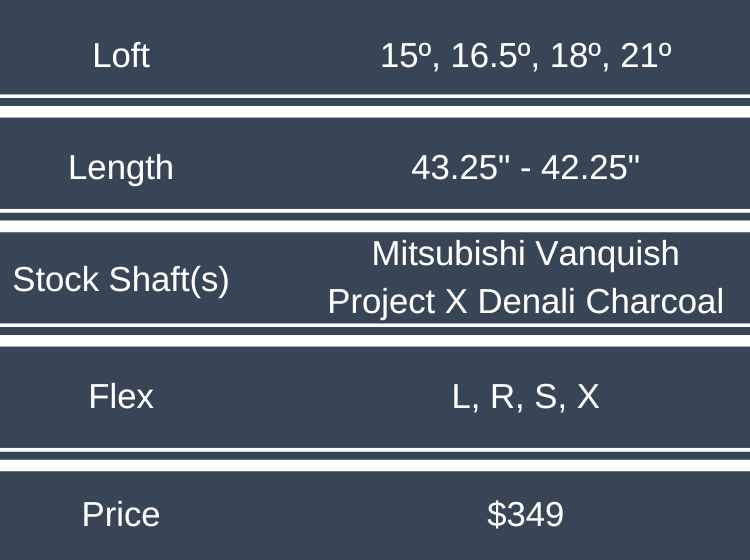 The Callaway Elyte X fairway wood offers the largest footprint for maximum forgiveness. Strong ball speed across the face and high, easy launch. Noticeable draw bias.