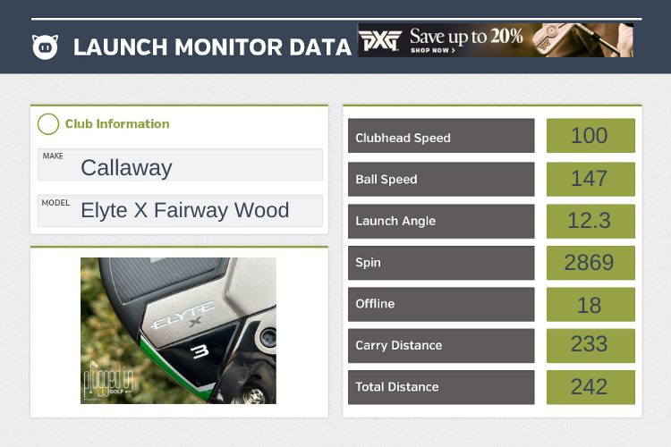 The Callaway Elyte X fairway wood manages to provide an exciting impact sound without being any louder than average. On center, it has a sharp, explosive whip crack sound. Mishits transform into more prototypical fairway wood “tink.” This is a strong piece of audio feedback that makes it very clear when you’ve hit a premium shot.