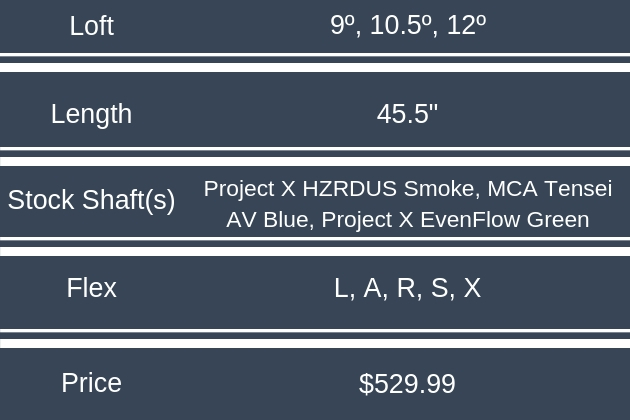 Finally, Callaway is offering an array of premium shafts with the Epic Flash. The Project X HZRDUS Smoke is the lowest launching, the new Tensei AV is the mid-launch profile, and the EvenFlow Green provides a lighter, higher launching option.