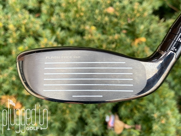 The sole of the ESH is quite busy. “Epic Super Hybrid” covers the toe side. Opposite that, you’ll find the number and loft designation. In the middle, there’s a weight port and the Jailbreak AI Velocity Blades.