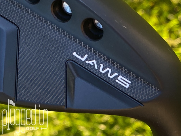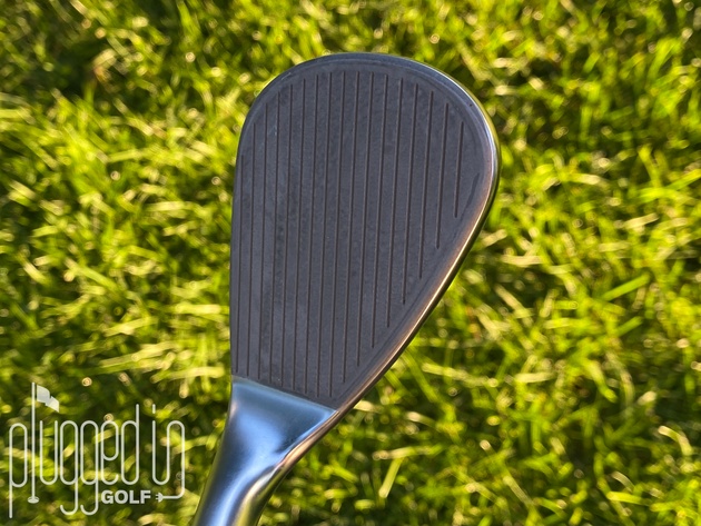 The Callaway JAWS Full Toe wedge takes a balanced approach to the high toe design. While the toe is clearly taller than a traditional wedge, the overall look isn’t exaggerated or cartoonish. The face is slightly larger than a typical wedge with a slightly rounded leading edge and a big, round toe. Also noticeable at address is the raw face, something new for Callaway.