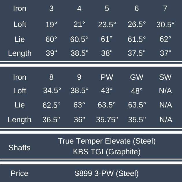 The Callaway MAVRIK Pro irons have impressive forgiveness and consistency for their size. Good looking clubs with excellent feedback.