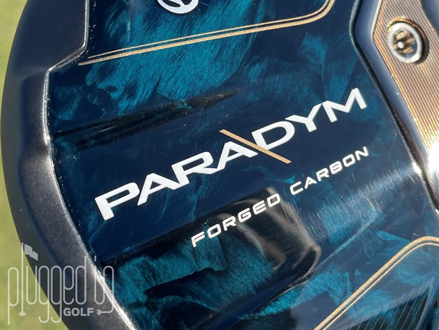 Moving on, at address the Paradym fairway wood has a lovely round shape that’s slightly toe-centric. The deep blue crown reveals its carbon construction when the light hits it right. The connector tabs of the body framework are visible, but not distracting.