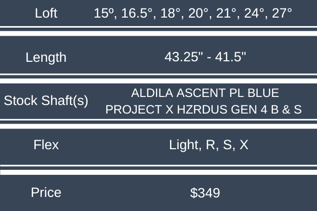 Callaway once again turned to A.I. to optimize ball speeds and forgiveness of the Paradym fairway wood. The all-new Jailbreak Batwing moved the stiffening elements to the perimeter, stiffening the framework and allowing the face to flex more. More flex equates to faster ball speeds. The C300 maraging steel face itself was also optimized for each loft.
