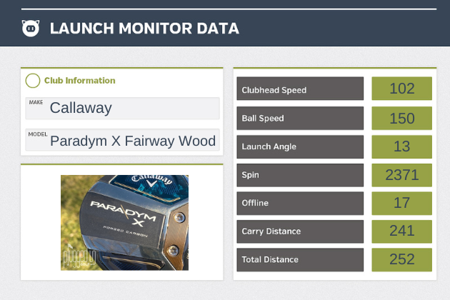 The Callaway Paradym X fairway wood creates enormous ball speed. Easy to launch off the turf. Strong draw bias that can be moderated with hosel adjustments.