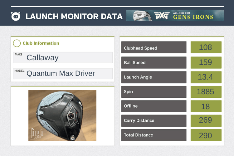 Beyond just keeping the ball speed high, the Quantum Max has an “Ai-Optimized Face Design” meant to balance speed, spin, and launch across the club face to keep distance consistent. This is something I definitely saw in my testing. I had a couple poor swings that prompted notes like, “250 carry off the heel.” When I lost a little ball speed from a sub-optimal strike, the distance loss was typically minimal because the launch ticked up and the spin dropped. These weren’t dramatic swings, just enough to take the pain out of my mediocre swings.