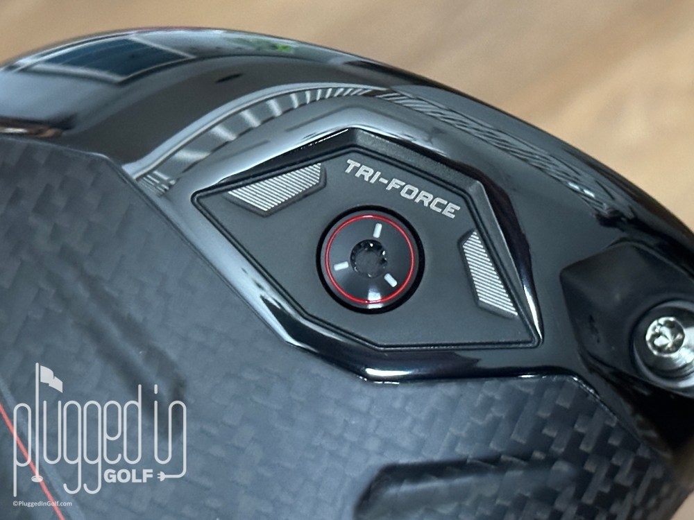 Let’s start with a tech overview of the Callaway Quantum Triple Diamond Max driver.  The most notable feature is the aforementioned Tri-Force Face, a combination of titanium, poly mesh, and carbon fiber.  Per Callaway, their AI tuned this unique material to “optimize speed, spin, launch, and accuracy” across the entire face.  This driver also has a 360° Carbon Chassis.  Because carbon is lighter than other materials, this gives Callaway’s engineers more freedom to position the CG for high performance and forgiveness.