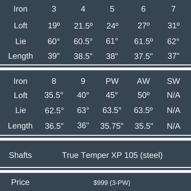 The Callaway Rogue Pro irons manage to blend the looks that a better player wants with the distance that every player wants. Forgiveness surpasses expectations. Great feel.
