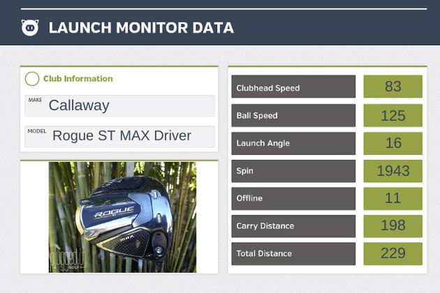 In a true testament to the forgiveness of the Rogue ST MAX driver, my data set at Club Champion started with my very first swing. Walking in cold, with a club I’ve never hit, I typically need a few swings to get to know the dynamics of the club. However, the Rogue ST MAX was posting 1.49 and 1.50 smash factors right out of the gate along with great carry and plenty of roll out. Instead of focusing on trying to make better contact, I found myself emphasizing better swings – a great place to be mentally.