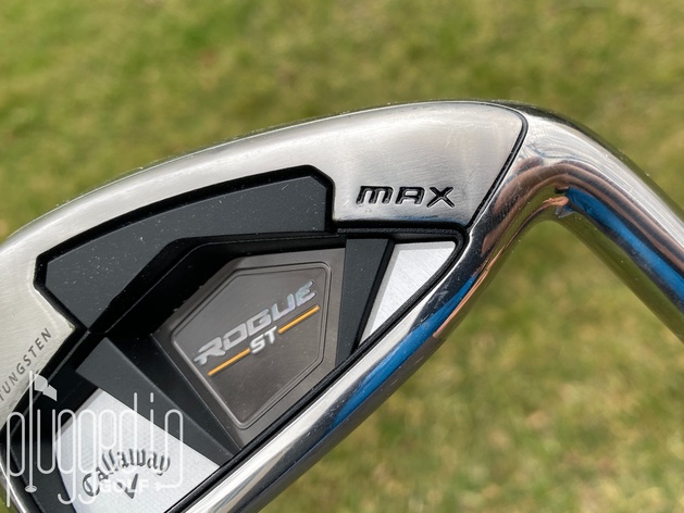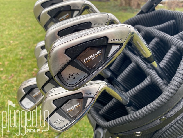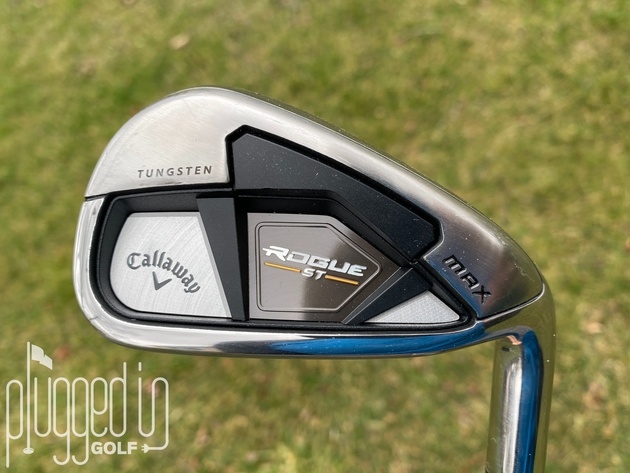 In the bag, the Rogue ST MAX irons are easily recognizable as Callaway. The deep cavity is divided into three sections, the middle part covered in a contrasting black. Each of the branding elements – the Callaway logo, “Rogue ST,” and “MAX” on the heel – are tastefully sized but given visual emphasis by their framing and placement.
