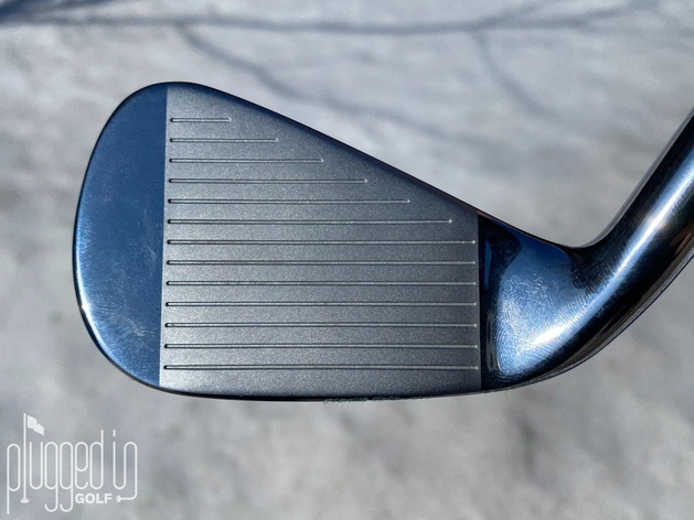 The Callaway Rogue ST Pro is an attractive players iron. Its top line is a little thick for the players category, but there’s very little offset and the head is fairly compact. Personally, I don’t love the shiny chrome on the heel and toe of the face, but the contrast with the grooved area does make the club look smaller.