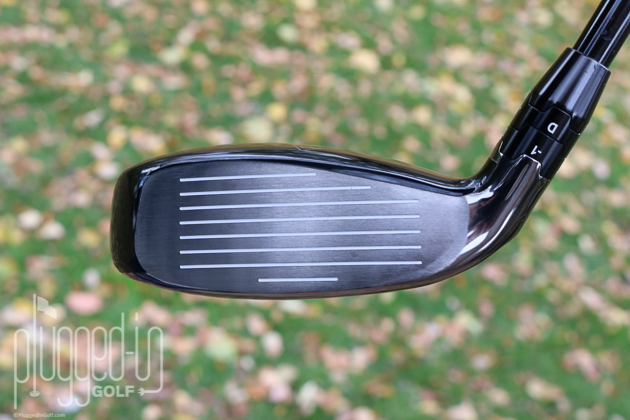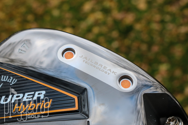 Flipping the club over, you see a sole that’s interesting without being too busy. The “Super Hybrid” branding is modest in size, putting most of the focus on the variety of shapes and finishes on the sole. You’ll also notice the Jailbreak bars near the face and a weight plug opposite them.