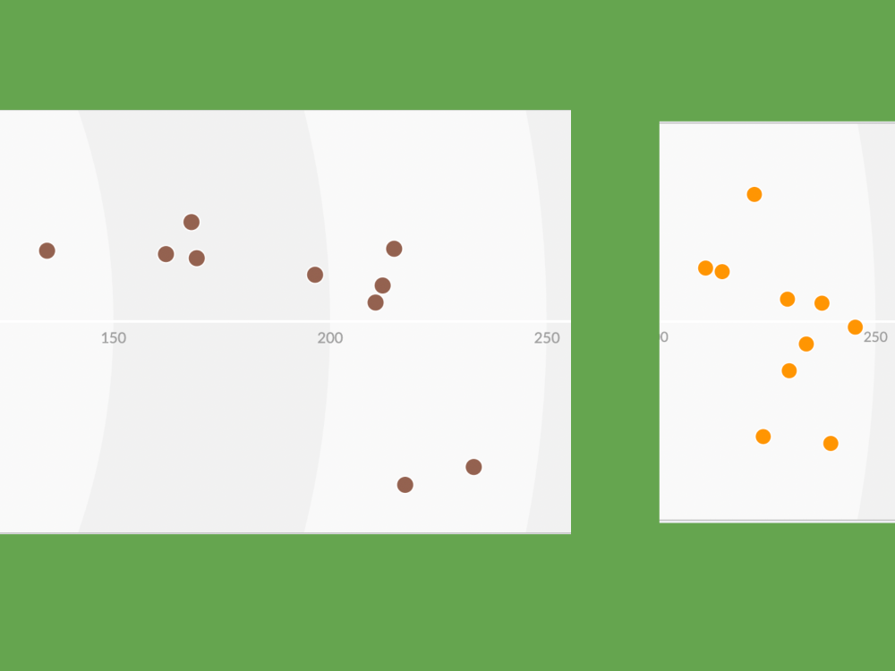 For this myth, we looked at two metrics: dispersion range (furthest left to furthest right) and total offline (adding up the offline distance of each shot). Tester 10 makes for an interesting study because his numbers with the PURE’d and non-PURE’d shaft were almost exactly the same. But there’s also a subjective element. Is there value in hitting all your shots to one side of the center line? What about hitting one consistent shot shape? Additionally, for this test we did not delete any shots, but how much would the orange group’s numbers improve if we took out that one shot that leaked left? Are you more concerned with eliminating that big miss or getting the majority into the tightest circle?