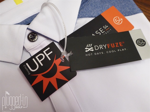 Both the Meta shorts and the Pace polo are made with DryFUZE, CHASE54’s premier fabric, which “transports moisture from your skin to the clothing’s exterior so you can look just as cool as you feel.”  I didn’t actually feel cool during some hot days on the course, but the wicking properties performed admirably. I was surprised to discover the Meta shorts only had 2% spandex, as they stretched freely when squatting to read putts.  There were no restrictions in my golf swing with the Pace polo’s 8% spandex and 92% polyester blend.