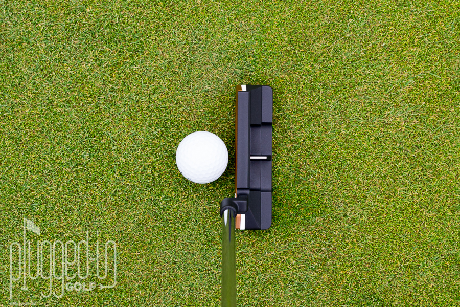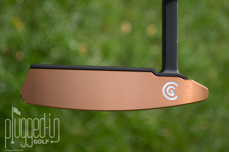 The other thing that I noticed about the Cleveland Golf 2135 putter at address are the bits of the copper and white face insert that are visible in the heel and toe. While I like the copper face – I think it helps this putter to stand out from the crowd – I do find the heel and toe a bit distracting at address.