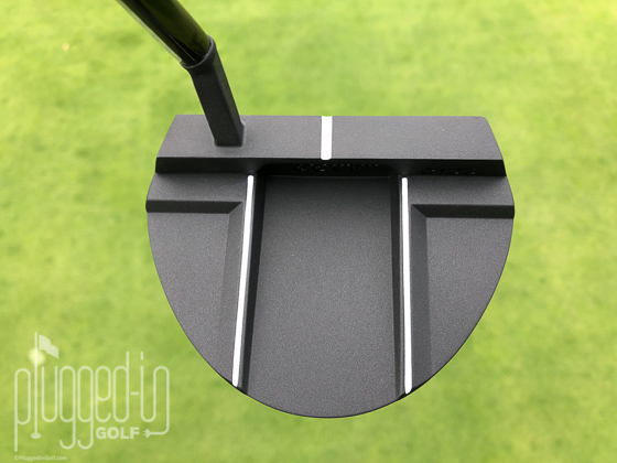 At address, the Frontline Cero has a clean and sleek look. To my eye, it has everything I need to confidently line up a putt and nothing extraneous or distracting. For a mallet putter like the Cero, that means one sight line in the center of the top line and two more on either side of the flange. Its matte black color also means that you’ll never have to worry about glare.