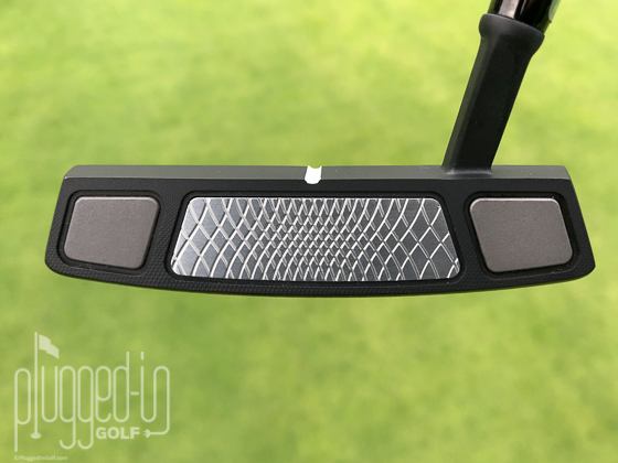 Things look neat and traditional until you turn your attention to the face. That’s when you’ll clearly see tungsten weights (47.3 grams worth) in both the toe and heel of the putter face. Between the two weights is a milled aluminum face insert Cleveland calls SOFT (Speed Optimized Face Technology). The company says the insert is designed to help eliminate putts left short.