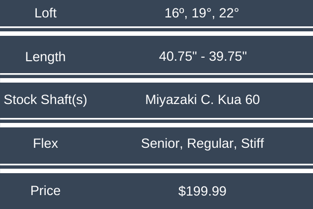 Even being the smallest sibling in the Launcher wood family, the Halo hybrid is chock full of technology, all working in harmony to send the golf ball high and straight. The HiBore crown allows for a lower center of gravity that creates higher launch. Halo Weighting refers to the sole structure and the weighting in the rails that provide stability. And, of course, the Gliderails themselves assist in keeping the club moving for speed retention. Rounding out the tech talk, Cleveland incorporates variable face thickness on the Halo hybrid to maximize ball speed and boost distance.