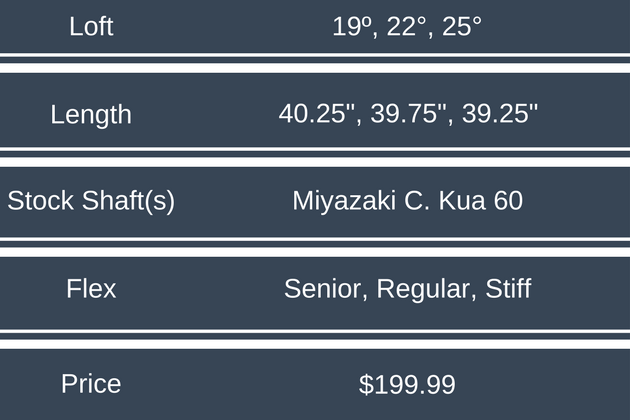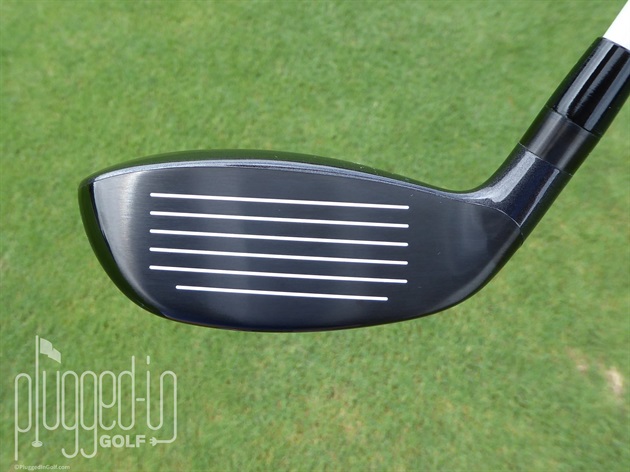 There’s no doubt that this 3 hybrid is part of the Launcher HB Woods family.  From the blue graphics of the Miyazaki C. Kua shaft to the ridges of the flex fin sole, the look is consistent.  The crown has the HiBore step down that appears in perfect proportion with the head size.  The silver band adds visual interest without being distracting.  The white grooves on the face are prominent at setup, suggesting the club is hungry for action.  The only oddity at address is the setup is a bit upright.
