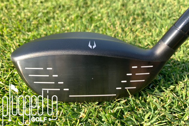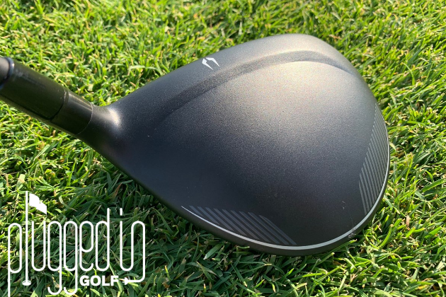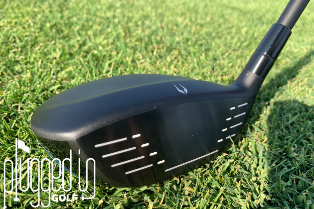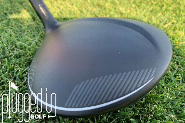 At address, this club lives up to its “XL” name – it looks bigger than other OEM’s clubheads. It comes in a pleasant no-glare matte black finish on the top. The top of the club also has a bit going on, including the Hibore Crown Step. That design element shaves mass away from the top of the club to reposition it lower for a higher launch. The club head also features an angular sight dot to confirm alignment.