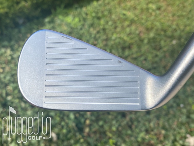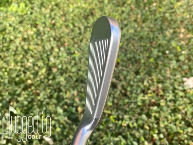 I mentioned earlier that the Cleveland Launcher XL irons are a progressive set. The long irons (4-7) are hollow body, the 8-DW are cavity backs. The grooves are also progressive. In the long irons, there are wider, flatter grooves to keep the spin down. In the short irons, Cleveland uses a deeper wedge-style groove to provide more spin and stopping power.