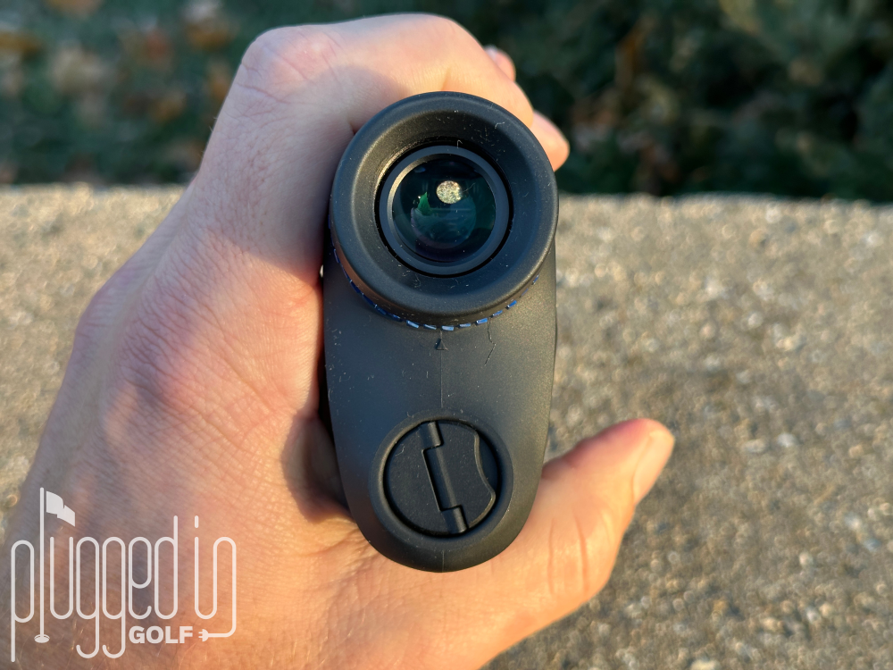 Something that stands out about the Cobalt Q-6SM rangefinder is the size and construction quality. We’re seeing more mini rangefinders, and many of the discount brands feel very cheap in hand. The Q-6SM is a full-sized rangefinder, similar to a Bushnell, and it feels like it’s built to last. It has some heft to it, and the button pushes are all solid. The Q-6SM is IPX7 waterproof and comes with a carrying case.