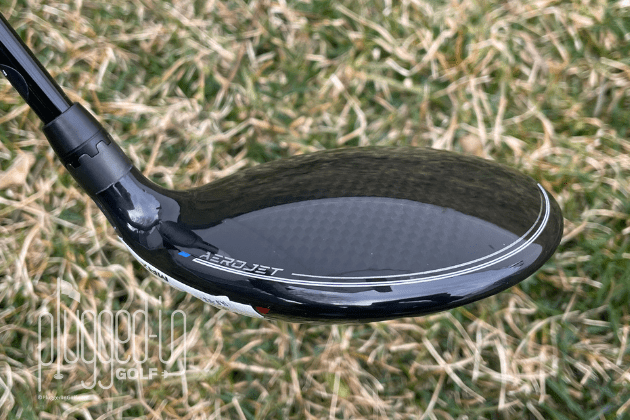 In the bag, the AEROJET MAX shows some flair with a bit of red, white, and blue mixed in along the sole. The two replaceable weights sit in the rear and heel of the club which encourage a closed club face at impact. The easy to read loft sleeve sits on the heel and displays the settings for the club.