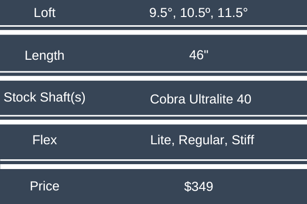 It’s worth noting that while the stock Cobra Ultalite shafts of the Air-X driver are labeled “40,” they are actually 50 grams. Shaft labels can be tricky – sometimes more marketing than spec driven. As always, we want readers to be informed.