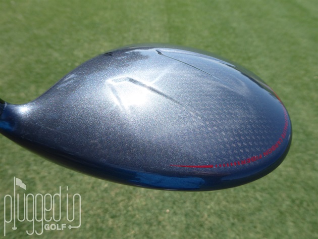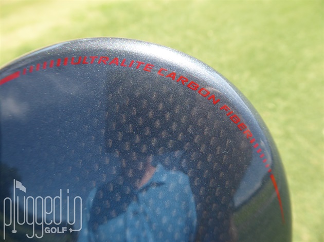 Back to the club, the large grey head looks aerodynamic from every angle. The crown offers a glimpse at its carbon composite construction in the back section while highlighting that feature with red text pin striping on the trailing edge. The face is fairly nondescript and well proportioned. The sole is busy, in typical Cobra fashion, and coordinates well with the headcover.