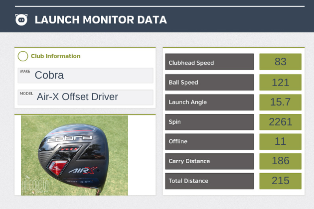 The Air-X is the lightest driver Cobra has ever produced. For me, the lighter weight implored me to swing with good tempo. The less I tried for distance, the more I got. The forgiving nature of the face deserves some of the credit as my contact was far from dialed in during data collection at Club Champion.