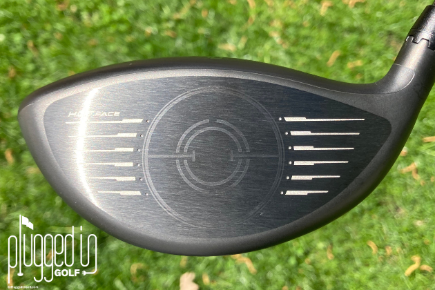 In terms of other visible details, there’s very little going on.  The matte black crown has a subtle carbon fiber pattern which fades as you get closer to the topline, as well as a Cobra logo “C” alignment aid.  Flip the club over and you’ll see a few more visual elements on the sole, mainly calling attention to some of the technology in the club.