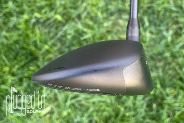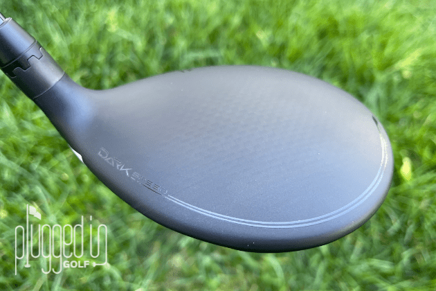 The Cobra DARKSPEED X fairway wood follows in the footsteps of its driver counterpart [review HERE] with an almost entirely black head. The crown is matte black with only the crown “C” logo as an alignment aid and “DARKSPEED” that outlines the rear of the club. At address, the clubhead sits slightly closed because of the offset but still frames the ball nicely.
