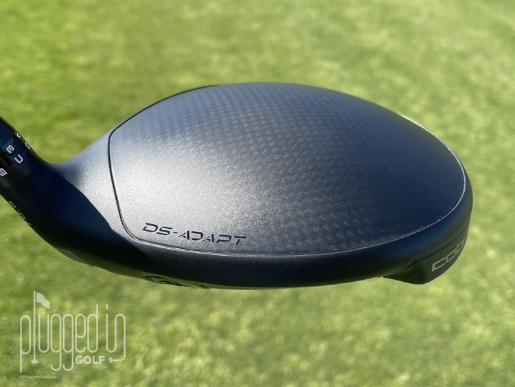 From the address position, the Cobra DS-ADAPT MAX-D driver looks the same as the MAX-K to my eyes. The slight pear shape favors the heel, and the blacked-out crown looks all business. The Cobra crowned “C” alignment aid is present, but not distracting. I did find the head sits a tad closed in the stock, neutral setting.