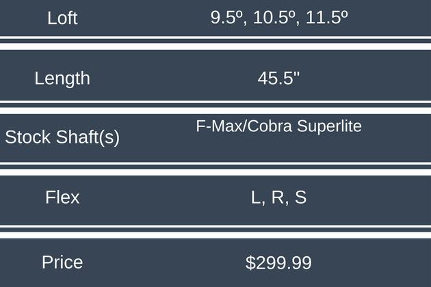 The Cobra F-Max driver is designed for easy launch, straighter shots, and more ball speed for slower swingers.