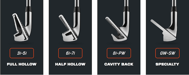 A major contributor to improved feel is the progressive hollow design through the set. In the picture above, you can see how the cavity progresses through the set. These hollows paired with the thinner, stronger PWRShell face makes for an exceptional GI feel.