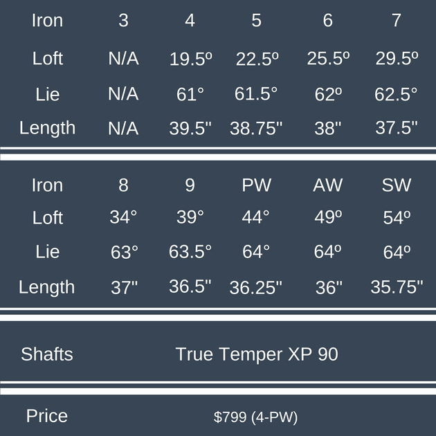 In an attempt to keep the long irons playable, Cobra has optimized the center of gravity throughout the set. In the 4-7 irons, the clubs are fully hollow with a low CG for higher launch. 8-PW are cavity backs, and the wedges are more blade-like with higher CGs. This helps with the distance gapping in the long irons, but players will still need to bring a good amount of club head speed.