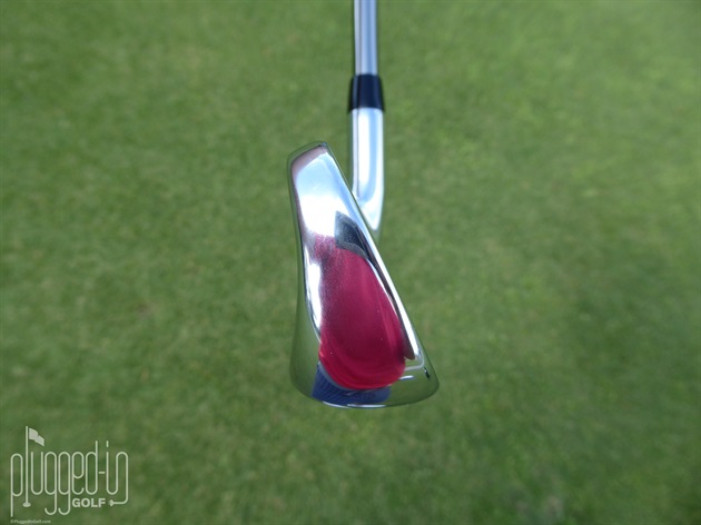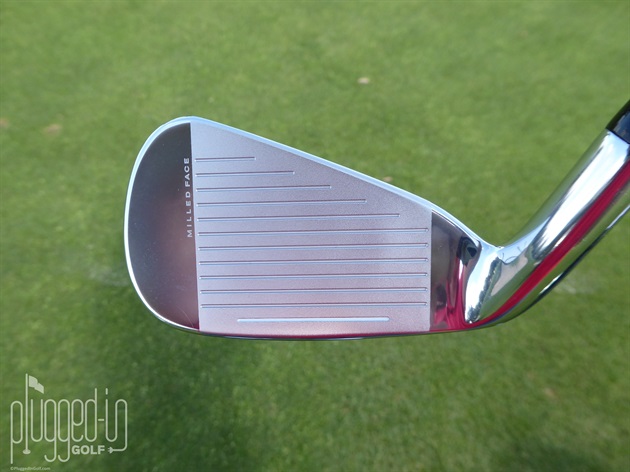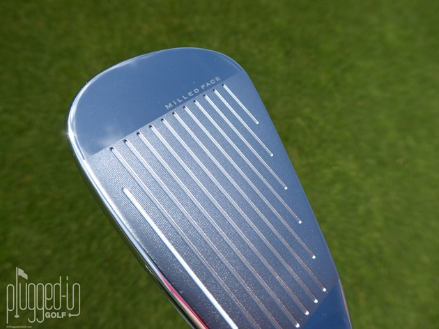 The soles of the SPEEDZONE irons are nearly identical to the F9’s with the elevated chrome center surrounded with the matte finish that blends into the PWRSHELL.  The cavity of the new irons is fairly typical of the category with bold branding located on an insert/medallion.  The face displays the fine details of Cobra’s milling in the hitting zone, but the polished chrome on the toe can be blinding when the sun hits it right.