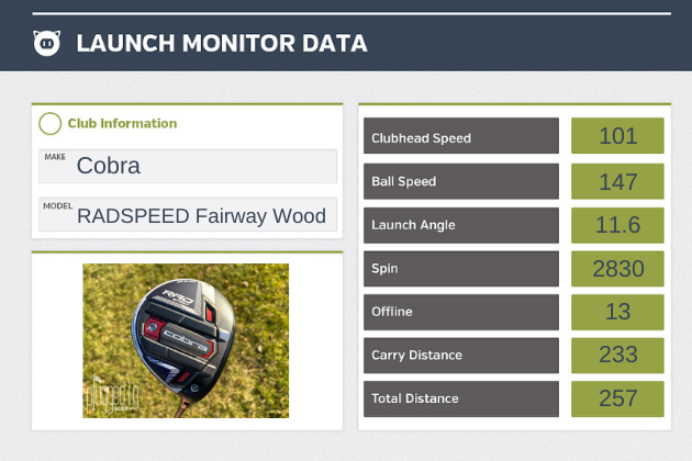 The Cobra RADSPEED fairway wood looks outstanding and sounds great. Very stable, forgiving head. Consistent launch and spin. Great choice for a wide variety of players.