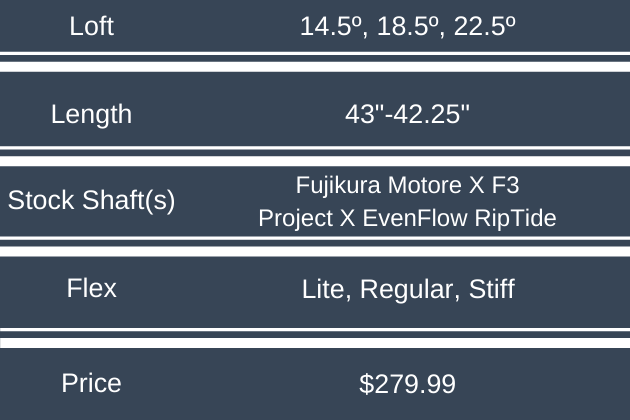 Cobra always turns heads with their colors and bold designs, but the RADSPEED fairway wood impressed me with the beauty of its size and shape. For me, the head hits that sweet spot of being big enough to inspire confidence and small enough that I know I can smoke it off the turf. I also love the round, symmetrical shape. My only complaint is that it sits a bit shut in the neutral position, but that’s easily fixed with the hosel adjustability.