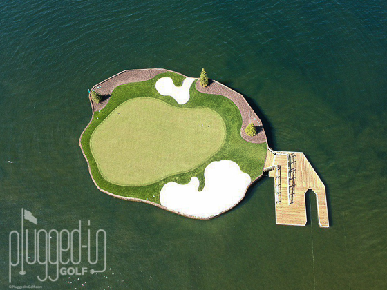 Did you really think I wasn’t going to list this one? Everything about this hole is a blast. Each tee shot in your group is full of drama, then you hop on “The Putter” for your ride to the green, and when you’re finished you get a certificate with your score on it. Gimmicky? Maybe. Fun? Absolutely.
