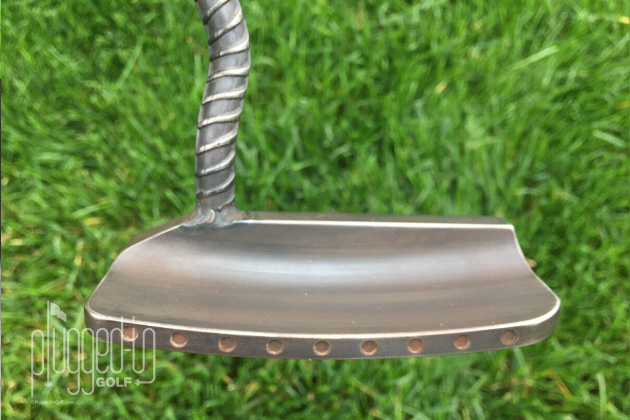 While the styling of each of the putters is somewhat traditional, the finish and custom touches make these premium putters stand out in the bag. For this review, I chose a wide flange, face-balanced carbon steel putter and what the owner labeled as a “tooling black” finish. I wanted to make sure I went with a matte or dull finish cause I’m not a fan of glare when standing over a putt, and this finish was perfect. I also had Jayme put a single sight dot on the top. Such a simple yet beautiful style.