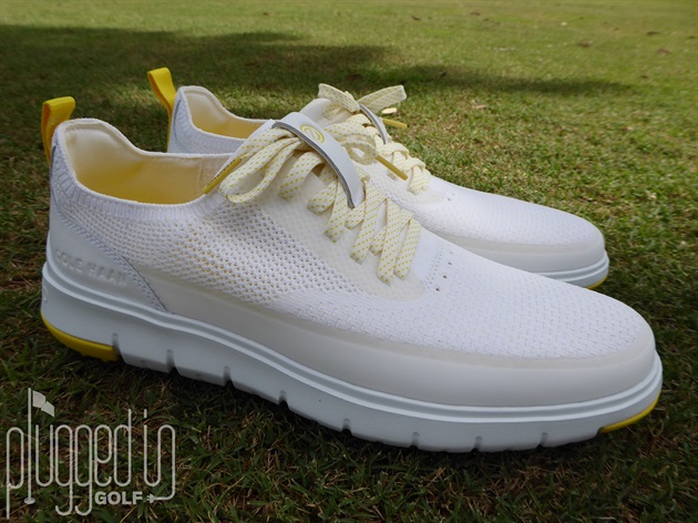Overall the shoes have a very coherent modern look that is sure to garner attention. The subtle execution of the multiple points of branding adds to the style. While I love the simplicity of the basic white Generation ZERØGRAND Golf Sneaker, for more pizazz check out the black-cyber yellow and sleet-black-cobalt blue colorways.