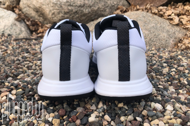 The waterproofing tech also excels. The interior (black) and the upper portion of the outsole (white) is a breathable mesh material that keeps your feet from feeling suffocated and overheated. The rest of the outsole is an impermeable, water-repellent material that does its job very well. Whether you’re dealing with casual water or an unexpected downpour, you can expect your feet to be dry when the round is over.
